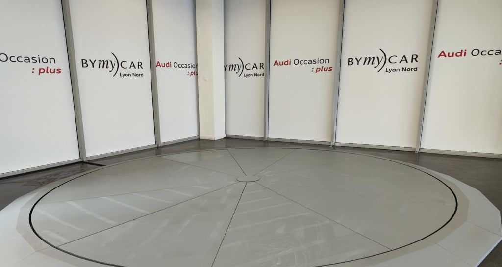 Retour aux réalisations Voiture Garage Pose et installation d’un plateau tournant chez ByMyCar Audi à Lyon